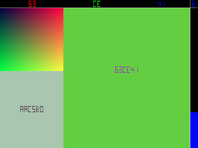 In questo modo l'utente vede 256x256 colori, che puņ scegliere con un click del mouse. Il colore scelto viene utilizzato per colorare la finestra centrale.